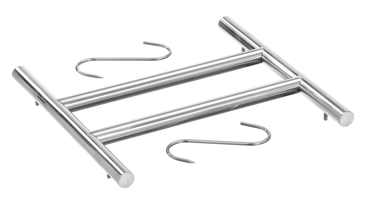 Inklusive | 1 Aktivkohlefilter ,1 Auffangblech ,1 Griff mit Montagematerial ,1 Hängegestell + 3 Fleischer-Haken ,2 Schlüssel ,4 Edelstahlroste ,1 Luftfeuchtigkeitsfilter + 1 Ersatzfilter + Halterung + Abtropfschale |