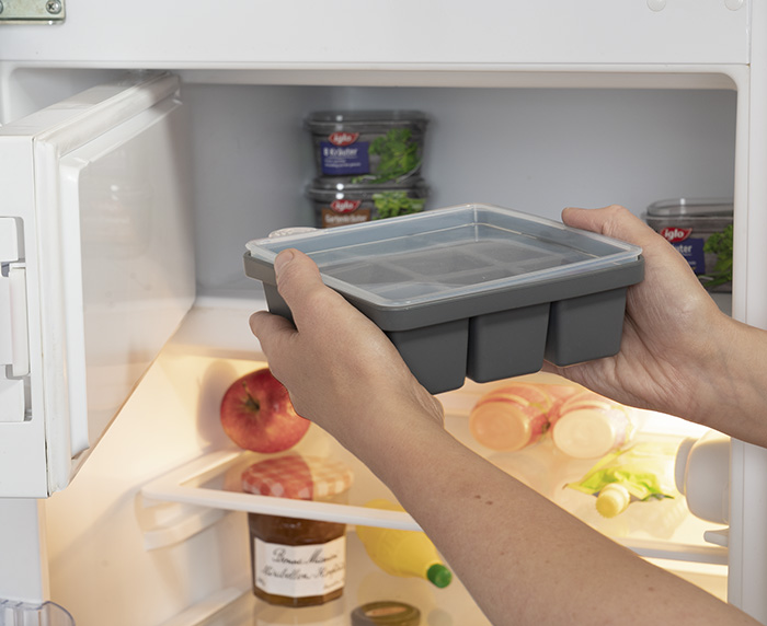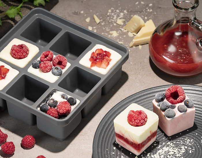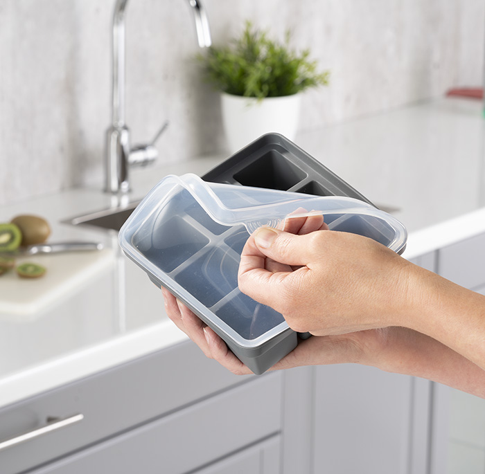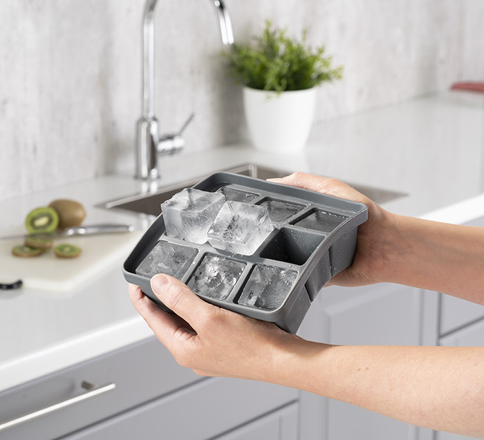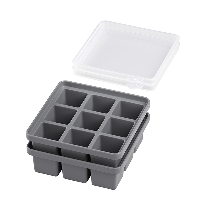 Silikon, grau, inklusive transparentem Deckel, je für 9 Eiswürfel, Eiswürfelgröße: 4 x 4 x 4 cm