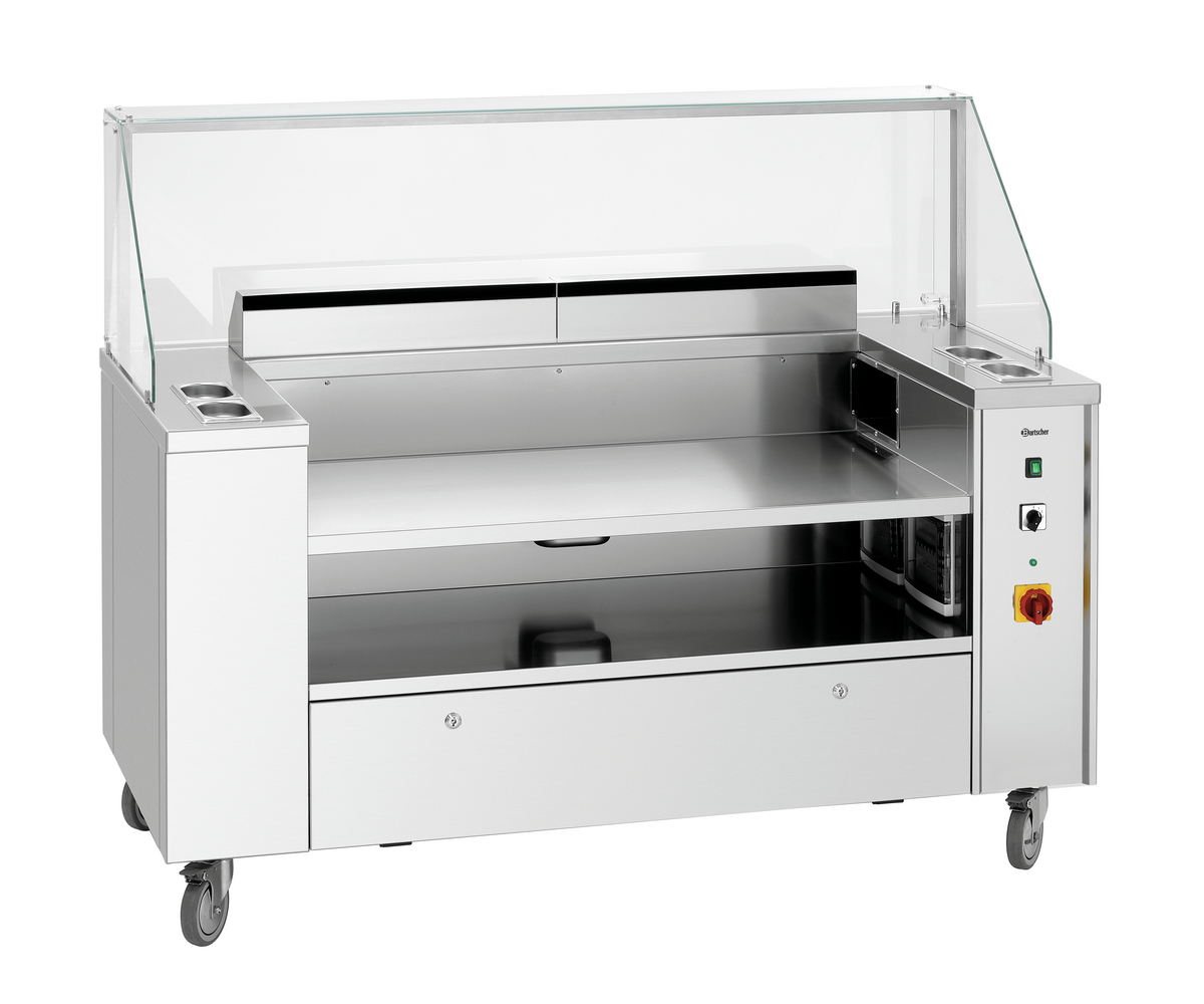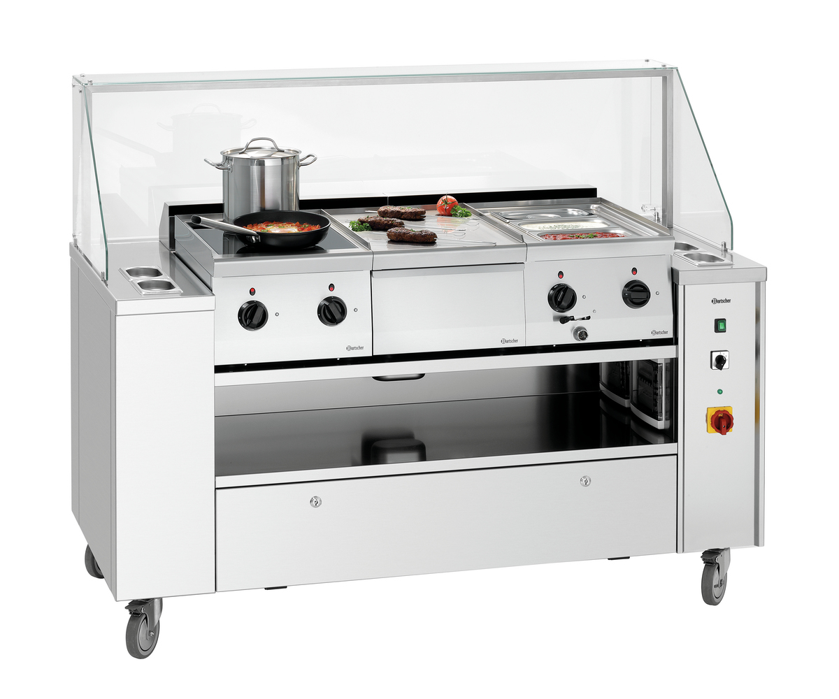 Wie aus einem Guss – die mobile Kochlösung für Front-Cooking, Catering und Event. Flexibel bestückbar mit den passenden Auftischgeräten und entsprechendem Zubehör ermöglicht sie einen flexiblen Einsatz. Die Geräte können bei unterschiedlichen Anforderungen einfach und beliebig gewechselt werden.