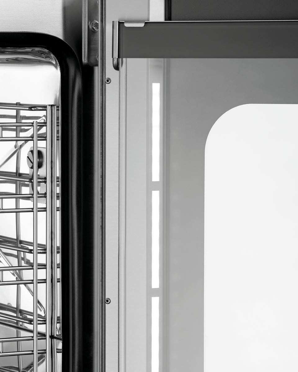 Eigenschaften | Abgerundete Backkammer ,Auflageschienen herausnehmbar ,Doppeltürverglasung ,LED-Beleuchtung in der Tür ,Steckdose (500 W) für den Anschluss einer Dunstabzugshaube ,Schnellere Aufheiz- und Wieder-Aufheizzeiten ,Reduzierte Garzeiten um bis zu 16 % ,Am besten geeignet für stark gefüllte Garräume |