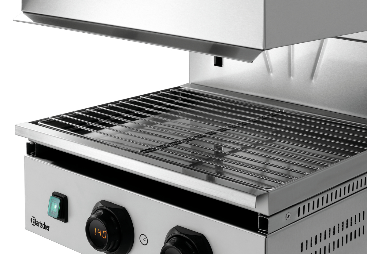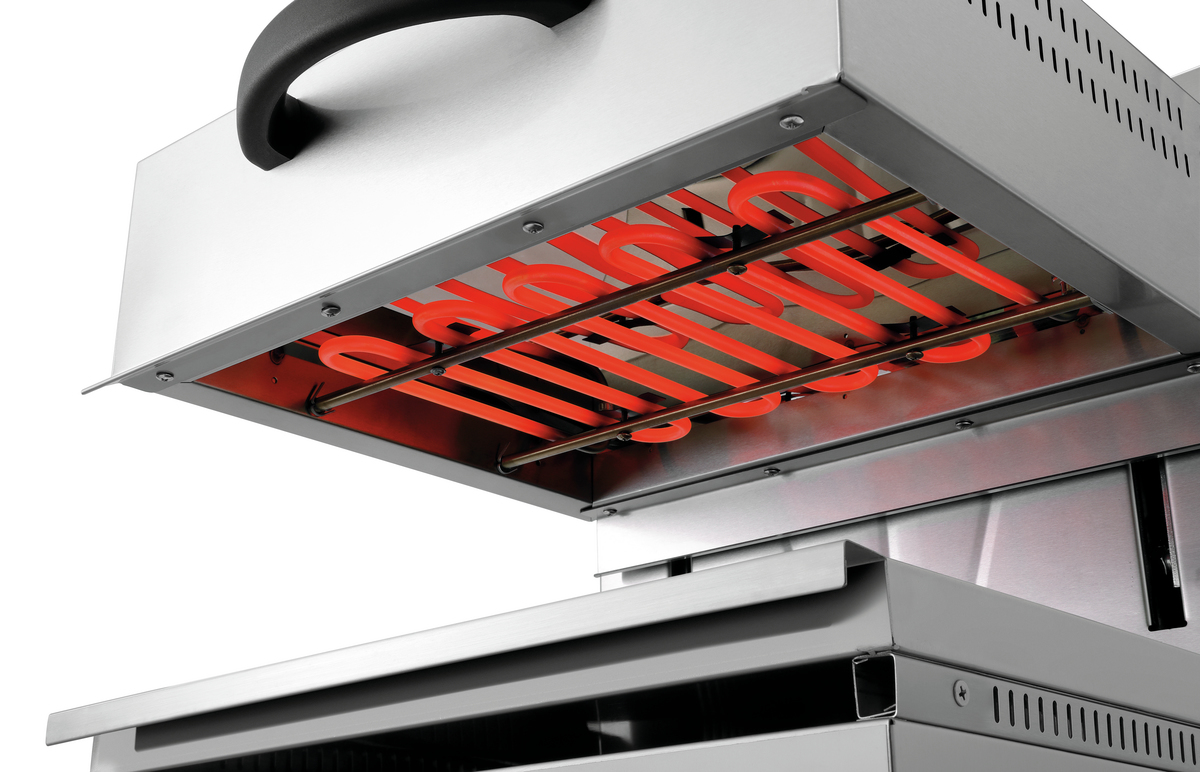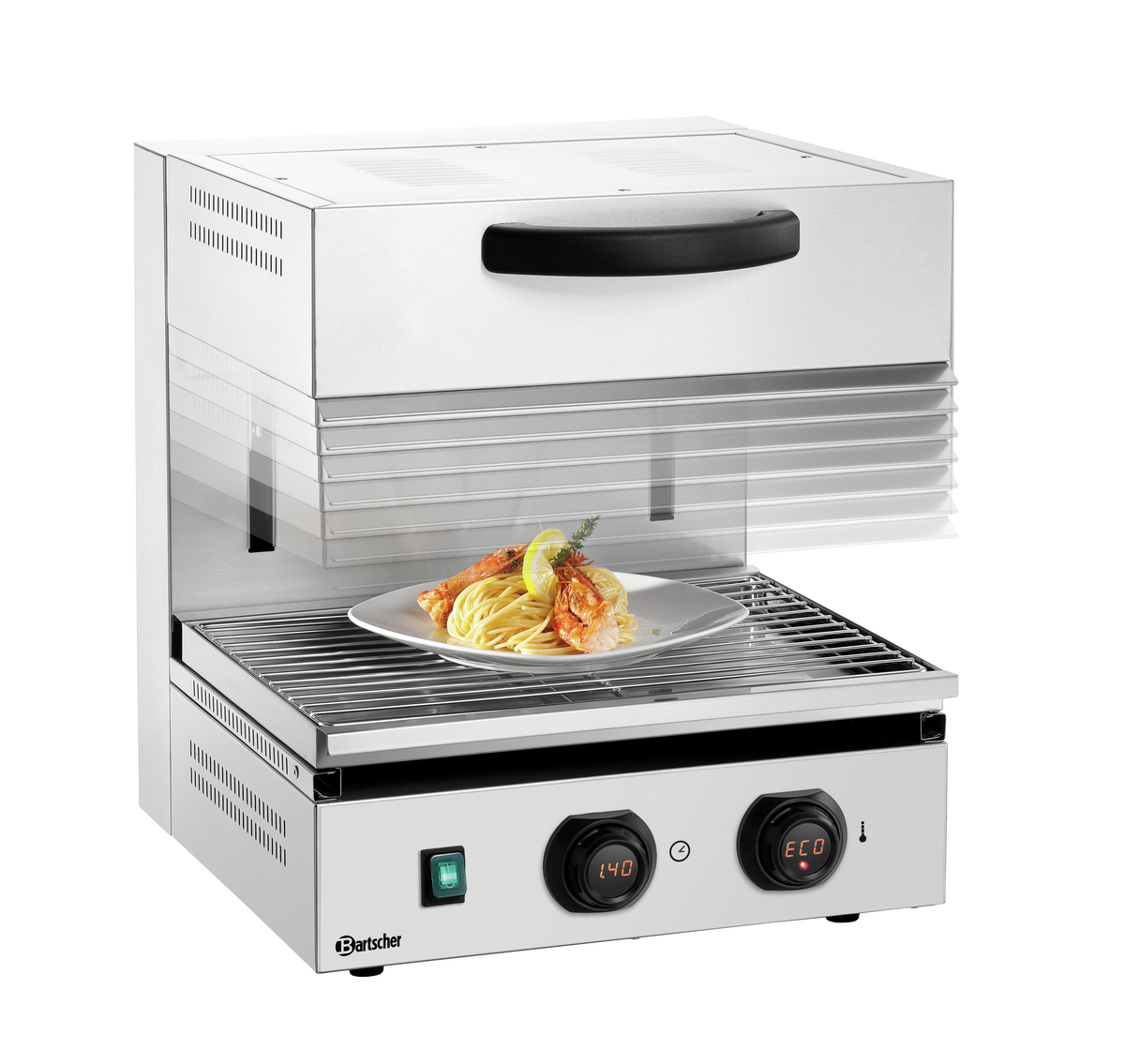Der Salamander mit intelligenter MDI-Steuerung lässt keine Wünsche offen: die Wärmeabgabe lässt sich über die Lift-Funktion sowie über die exakte digitale Temperatur- und Zeiteinstellung regulieren. Für optimierte Arbeitsabläufe sorgen die Memory-Funktion und ein akustisches Signal nach Ablauf der Zeit. Mit dem energiesparenden Eco-Modus werden Speisen schonend warmgehalten und Kosten gespart.