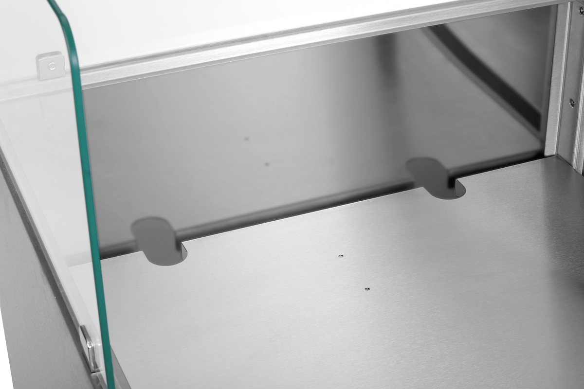 Eigenschaften | 2 Kabelschächte ,Magnetische Edelstahlfront als Werbefläche nutzbar ,Glasscheiben (Sicherheitsglas) an der Bedienerseite abgerundet ,Vielseitige Gerätekombinationen durch optional erhältliche Einlegeböden ,Mögliche Verbindung von 2 Snackpoints 200 oder mehr |