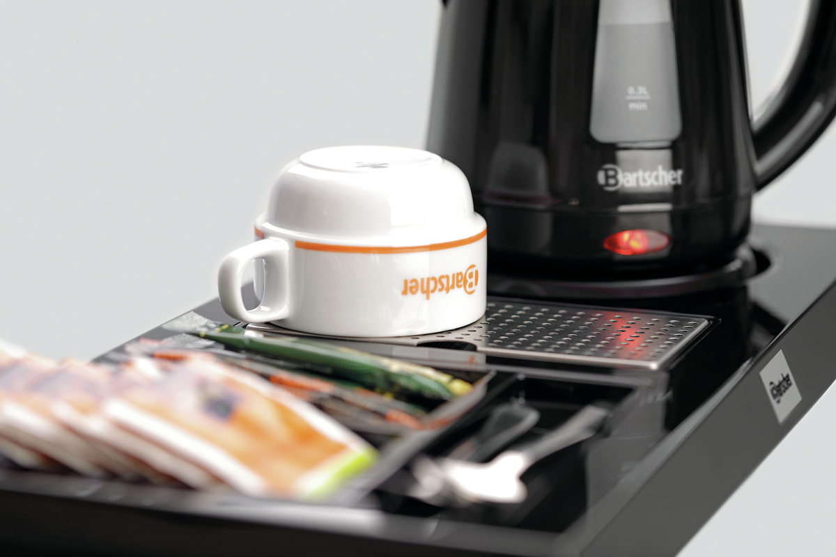 Heißwasser für Tee, Instantkaffee oder andere Aufgussgetränke: Ob auf dem Hotelzimmer, in Wartebereichen oder bei der Kundenberatung. Mit der Teestation ist alles ordentlich und sofort griffbereit – Vom Teebeutel bis hin zum Löffel.